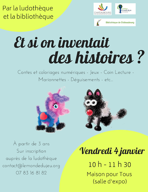 La bibliothèque et la ludothèque proposent une animation le vendredi 4 janvier, de 10h à 11h30 à la Maison pour Tous. Cette animation est accessible à partir de 3 ans pour des enfants accompagnés. Elle est gratuite mais il faut s’inscrire à la ludothèque, le nombre de places étant limitées.