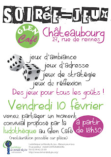 Comme tous les deux mois , nous vous proposons le vendredi 10 février une soirée jeux au Glen café à partir de 18h30.